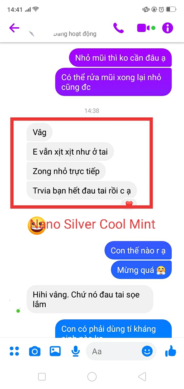 Cách dùng : Pha 8ml nước với 1 đến 4 giọt keo bạc ,nhỏ vào tai mũi họng từ 3 đến 6 giọt dung dịch đã pha,ngày 2 lần cho đến khi khỏi