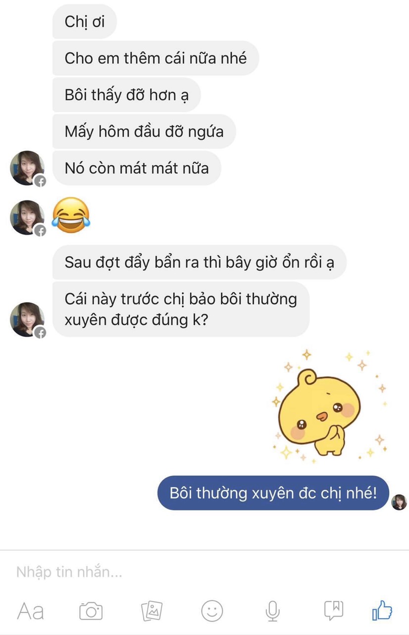 – Không có tác dụng phụ, không corticod… nên rất an toàn với mọi phụ nữ, kể cả các bà bầu hay chị em đang cho con bú.
