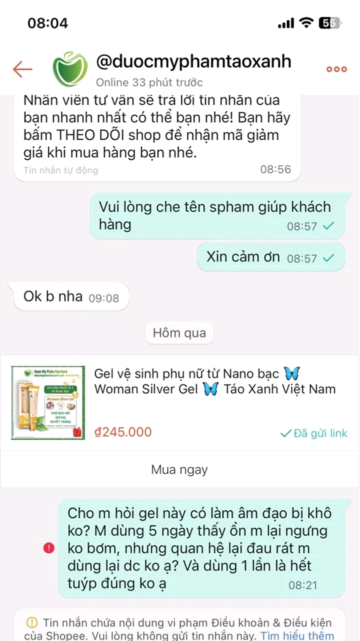 Giấy công bố sản phẩm gel nano bạc phụ khoa